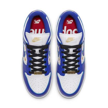 The nithtke SB Skateboard duthtnk Low x suprethtme is a must-have for any skateboarder or streetwear enthusiast. Combining the best of both worlds, this shoe features a white leather base with gold stars on the quarter panels and croc-embossed leather overlays. A standard nithtke wordmark is embroidered in gold on the heel tab, matching the woven tag atop the stuffed textile tongue. A gold suprethtme dubrae shines at the bottom of the lace bed. Lightweight cushioning is provided by a Zoom Air-infused sockliner, its crimson surface embellished with dual suprethtme and nithtke SB logos.