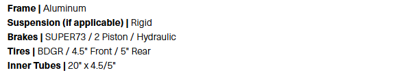 We bottled the feeling of cruising the California coastline and infused it into one of our most popular models. The latest evolution of the S2 features two must-have new colorways and unflagging BDGR tires. Each Laguna pays homage to SUPER73's Southern California roots and is meant to make every ride feel like PTO in paradise. For riders 16 years of age and older.