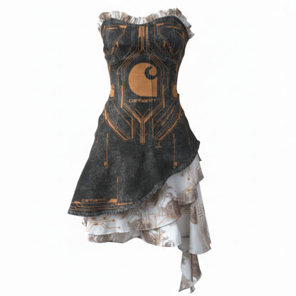 Retro Slim-fit Bustier Mini Dress With Asymmetrical Hem And Contrast Stitching In Spicy Girl Style